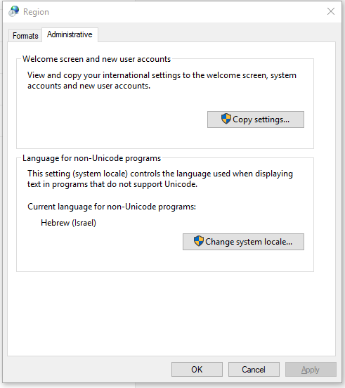 הפתרון: לשנות את ה"מיקום" של מערכת ההפעלה שלכם ל"עברית"(מה שאתם מכירים בתור Current system locale)